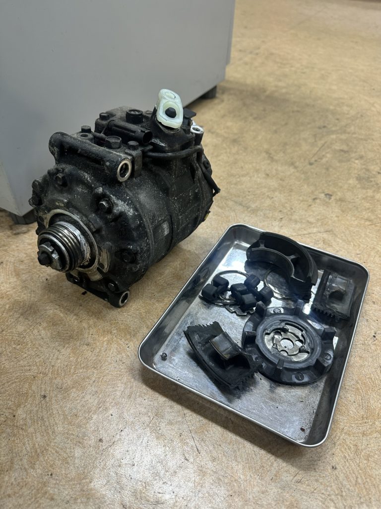 見ての通りACコンプレッサーがバラバラに砕けていました。こんなバラバラになっているのは初めて見ました。